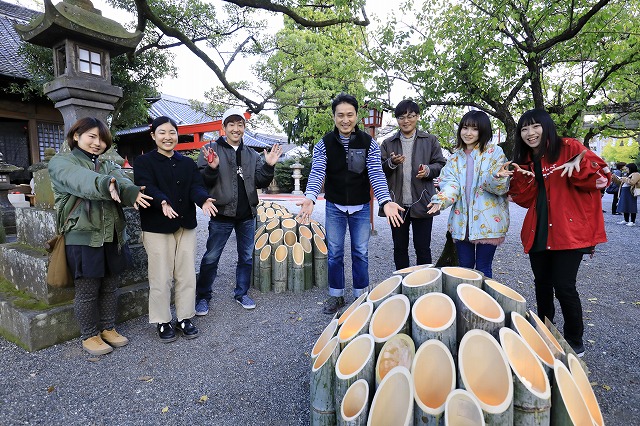 次にご紹介するのが、秋に臼杵市で開催される竹宵です。竹の造形作品を10名ほどの有志のメンバーで作成し、現地での設営、運営、撤収を行います。自分は1年次に参加したので、上の3学年との交流が深まる良い機会となりました。