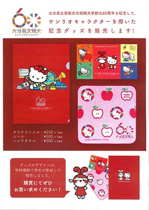 この事業は、学科横断で学生が参加し、サンリオキャラクターを用いた記念グッズを製作販売するものです。その過程を通じてデザイン、マーケティング、知的財産など、クリエイティブ人材に必要な知見を身につけることを目的としています。