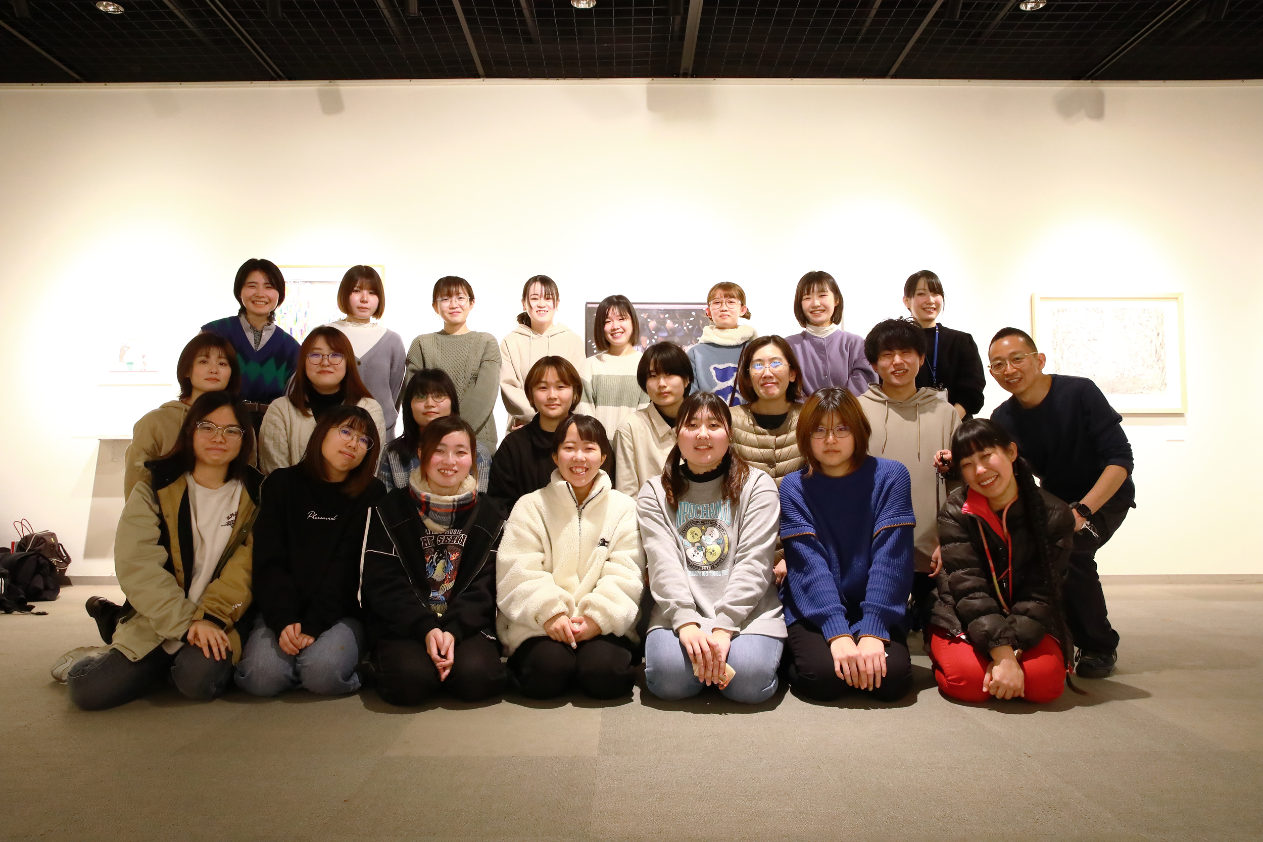 グラフィックアートコースのプリントメイキング作品展。iichiko総合文化センターB1F県民ギャラリーにて、アーティスト 大坂秩加氏をゲストに教職員・学生の作品27点を展示。短大1年生を中心に企画・運営を行い、展覧会を開催する上でのノウハウを身につける機会となった。また、シンポジウムではゲストの大坂秩加氏に基調講演及び本学教員(於保・加藤)との対談を通して、グラフィックアート(版画)について理解を深めるきっかけとなった。
