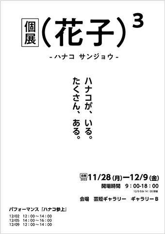 芸短ギャラリーにて 作品展「(花子)³ -ハナコ サンジョウ-」を開催します