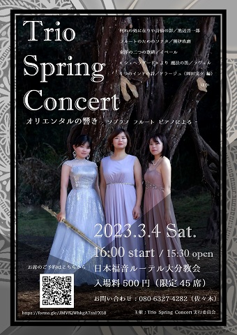 3月4日(土)、日本福音ルーテル大分教会にて「Trio Spring Concert」が開催されます。