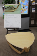 『ほうわホルトホールプラザ』は、各種ローンや資産運用、保険、相続・年金関係など相談業務を中心とした専門店。ゆったりとした空間に、学生たちのアイデアあふれる作品を展示しています。現在は、『オーハタパール』と生活造形デザインコースプロダクトデザインの学生がコラボレーションした提案作品と、シンプルな形でありながらユニークな使い方ができるテーブル「ころりんてーぶる」を展示しています。