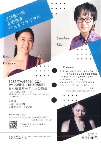 2023年6月30日(金)、日本福音ルーテル大分教会にて「江戸聖一郎、永野伶実 デュオリサイタル」が開催されます。