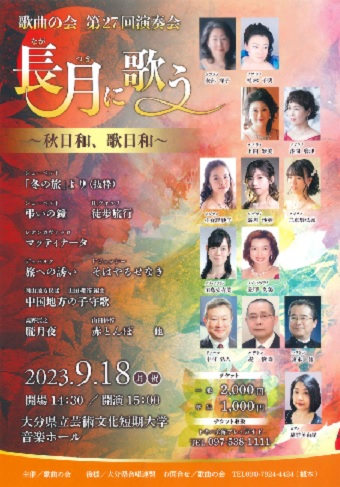 歌曲の会 第27回演奏会「長月に歌う」が開催されます