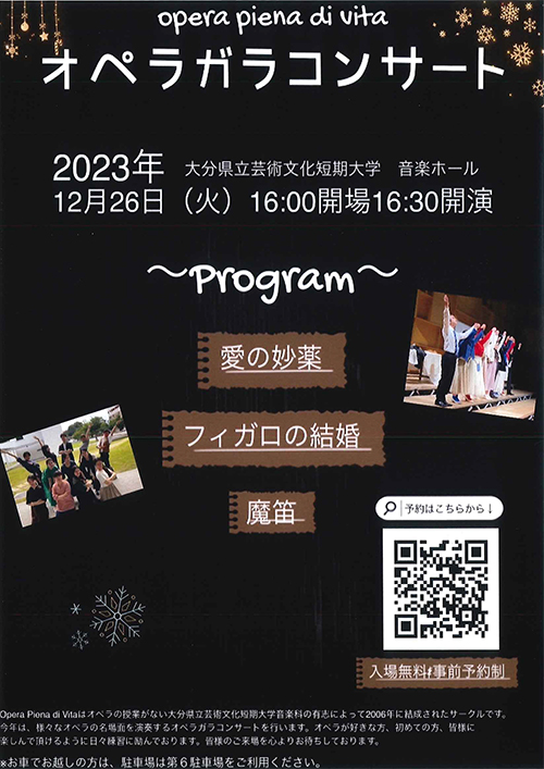 本学音楽ホール棟 音楽ホールにて、芸文短大オペラサークル「Opera Piena di Vita」主催による 『オペラガラコンサート』を開催します。