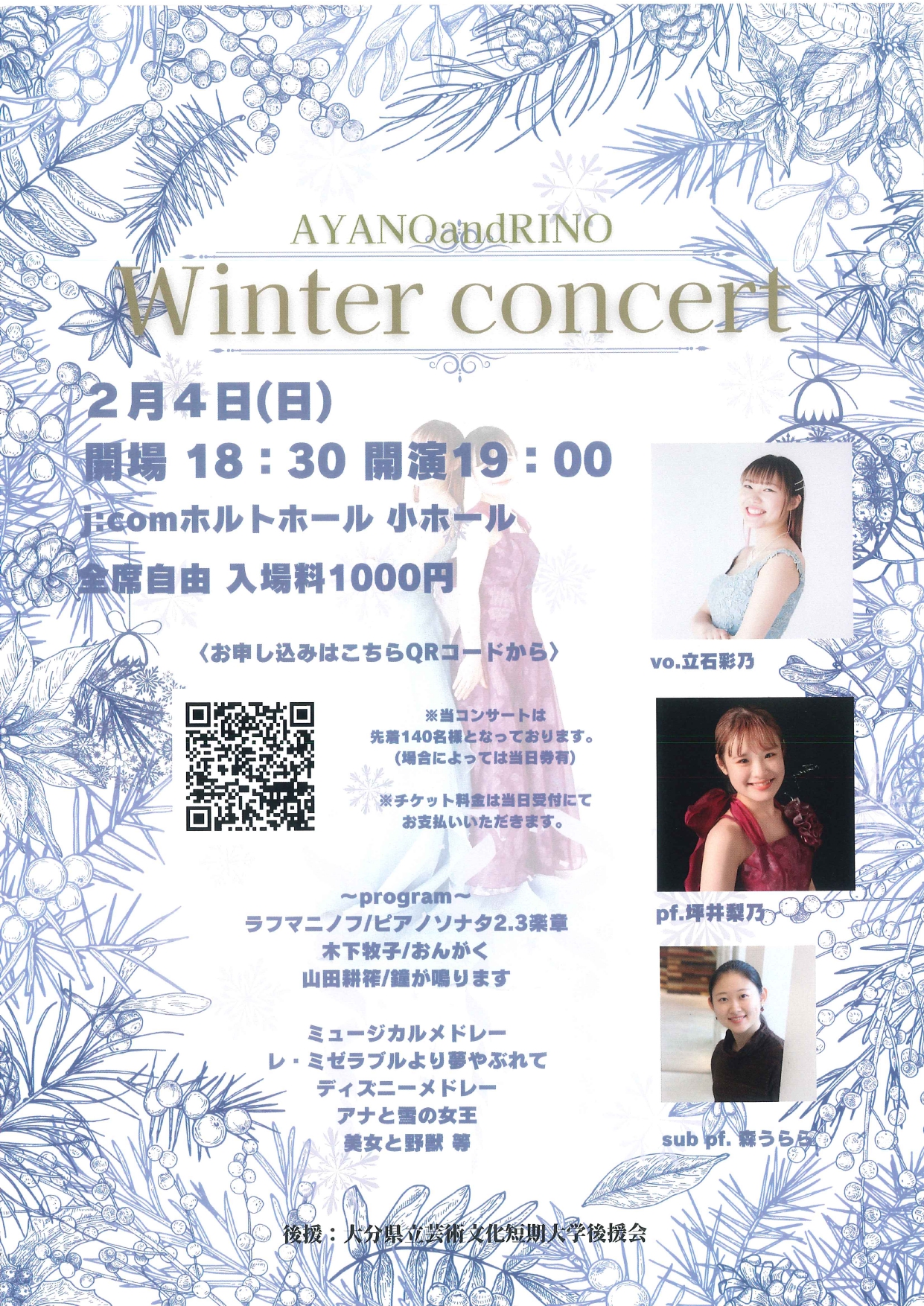 J:COMホルトホール大分 小ホールにて、「AYANO and RINO Winter concert」が開催されます。