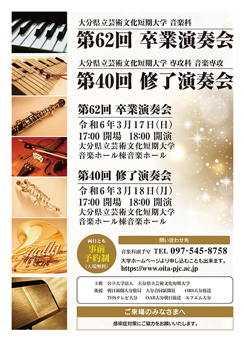 音楽科「第62回 卒業演奏会」、専攻科音楽専攻「第40回修了演奏会」を開催します