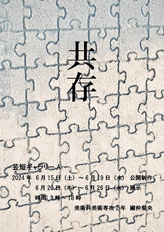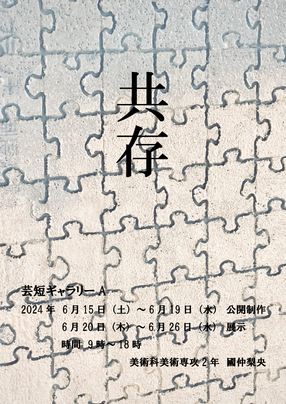 芸短ギャラリーにて、美術科美術専攻2年生 國仲梨央さんによる「共存」を開催いたします。