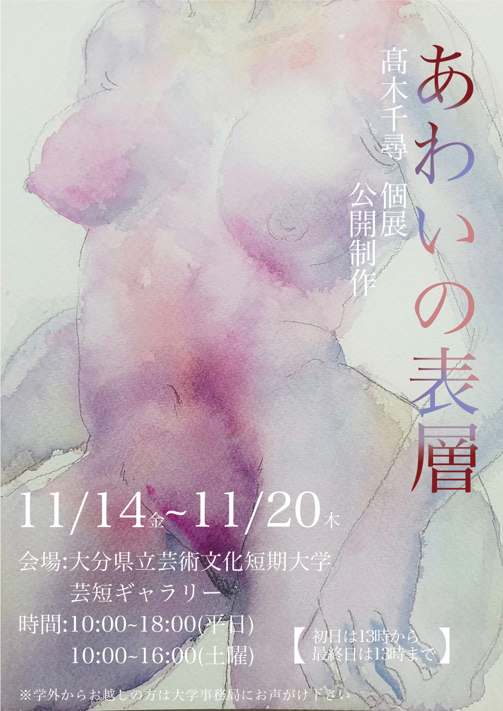 芸短ギャラリーにて、美術科美術専攻2年生高木千尋さんによる個