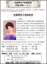 佐藤美枝子客員教授 声楽公開レッスンを開催します