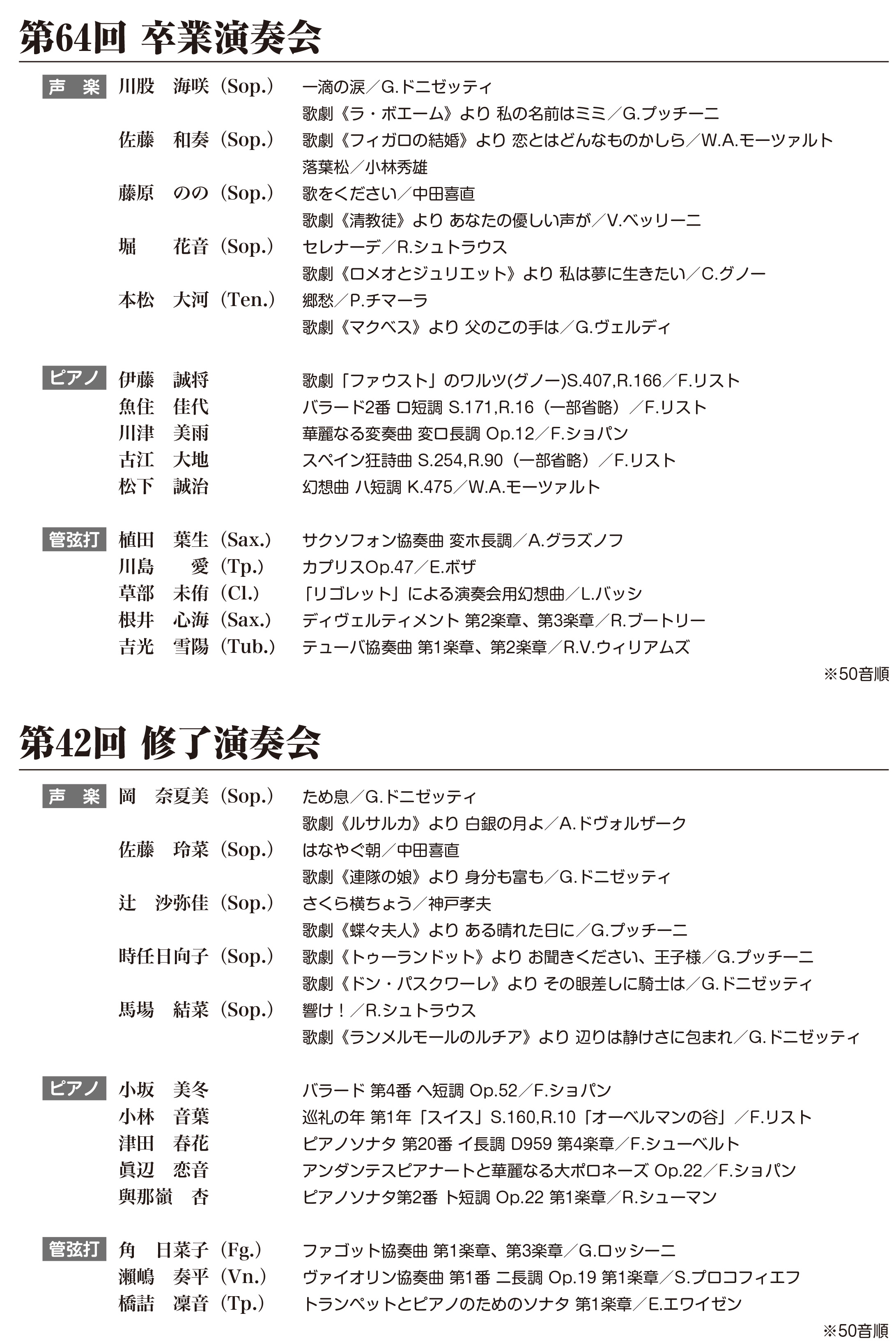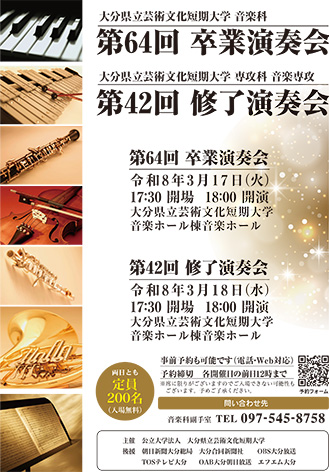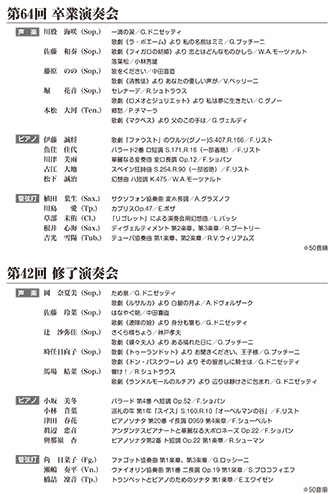 音楽科「第64回 卒業演奏会」、専攻科音楽専攻「第42回修了演奏会」を開催します