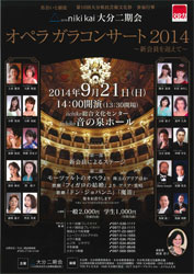 9月21日(日)、iichiko総合文化センター 音の泉ホールで開催される大分二期会主催「オペラガラコンサート2014~新会員を迎えて~」に、本学教員、修了生、学生らが出演します。