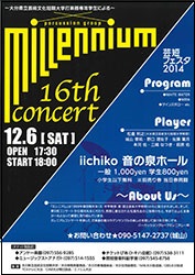 12月6日(土)、iichiko音の泉ホールにて「パーカッショングループミレニアム16thコンサート」を開催します。