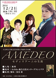 12月21日(日)、iichikoグランシアタにて創作音楽劇「AMEDEO~モディリアーニの生涯~」を開催します。創作音楽劇は、本学4学科の学生が、出演・演出・舞台装飾・演奏・広報・・・とそれぞれの特徴を活かしながら創りあげる、毎年恒例の舞台です。