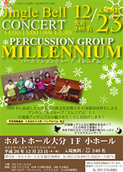 12月23日(火・祝)、ホルトホール大分小ホールにて、パーカッショングループミレニアム「ジングルベルコンサート」を開催します。