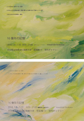 学内ギャラリー(芸術棟1階)では1月4日(月)~ 1月10日(日)、事務局(卒業生)の平川雅英さんによる作品展「16億年の記憶」を開催します。
