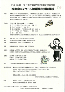 5月17日(火)、本学音楽棟 小ホールにて実施する「2016年 吹奏楽コンクール課題曲指揮法講座」の受講者を募集します。