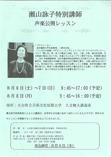 瀬山詠子講師の声楽公開レッスンを聴講できます