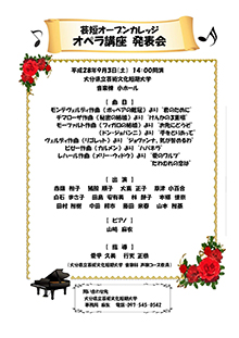 芸短オープンカレッジ「オペラ講座発表会」を、9月3日(土)14:00より本学音楽棟小ホールで開催します。
