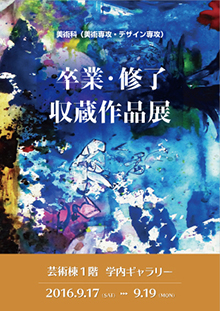 学内ギャラリー(芸術棟1階)では9月17日(土)~ 9月19日(月)、作品展「卒業・修了収蔵作品展」を開催します。