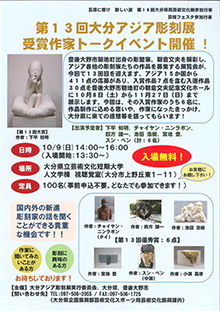 10月9日(日)に、本学人文棟視聴覚室にて「第13回大分アジア彫刻展受賞作家トークイベント」を開催します。