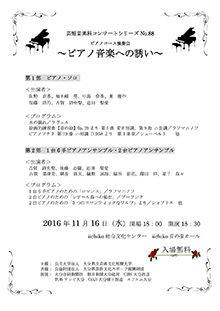 <芸短音楽科コンサートシリーズ№88 ピアノコース演奏会 ~ピアノ音楽への誘い~>