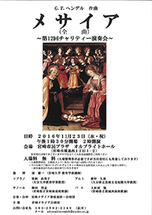 11月23日(水・祝)、宮崎市民プラザ オルブライトホールにて開催される「G.F.ヘンデル作曲 メサイア(全曲)~第12回チャリティー演奏会~」に、本学音楽科 愛甲久美 教授(アルト)、栗栖由美子 非常勤講師(ソプラノ)が出演します。
