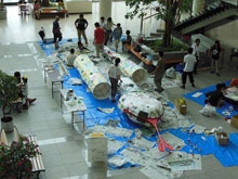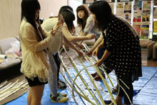 2013年8月に『OASISひろば』にて18mの竹のオブジェを制作、ガレリア竹町に展示しました。2014年1月には、オアシスタワー地下エントランスに移動展示を実施。6月17日~22日には、大分県立芸術会館にてアートスネークをつくるワークショップを行いました。9月5日の「大分市美術館まちなかアートフルロードプロジェクトイベント」への参加や、10月に開催される大分県民芸術祭へも参加する予定です。