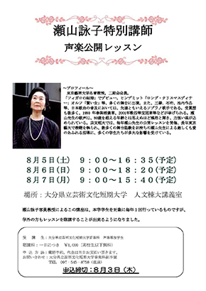 瀬山詠子講師の声楽公開レッスンを聴講できます