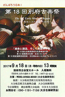 9月18日(月・敬老の日)に別府市公会堂大ホールで開催される、「第18回 別府古楽祭」に本学音楽科 小川伊作教授が出演します。