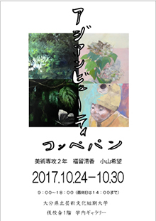 学内ギャラリー(仮校舎1階)では、10月24日(火)~ 10月30日(月)、美術科美術専攻2年福留清香さん、小山希望さんによる作品展「アジアンビューティコッペパン」を開催します。