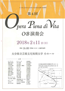 2月11日(日)、本学音楽棟小ホールにてオペラサークル「Opera Piena di Vita」のOBと現役部員による第4回「Opera Piena di Vita OB演奏会」を開催します。