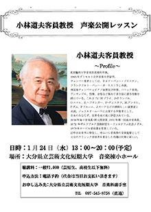 本学音楽科・小林道夫客員教授による声楽公開レッスンを1月24日(水)に開催します。聴講者を募集します。