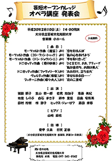 今年度後期に行われた「オペラ講座」の受講者が、練習の成果を披露します。