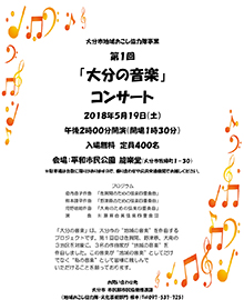5月19日(土)、平和市民公園能楽堂で開催される「大分市地域おこし協力隊事業 第1回『大分の音楽』コンサート」に本学教員と非常勤講師、卒業生が出演します。