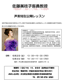 佐藤美枝子客員教授 声楽特別公開レッスンのお知らせ