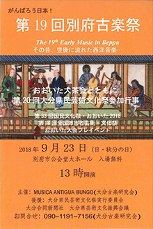 本学音楽科 小川伊作非常勤講師が代表を務める「大分古楽研究会」が、「第19回別府古楽祭」を9月23日(日・秋分の日)に別府市公会堂大ホールで開催します。