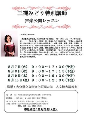 三縄みどり特別講師の声楽公開レッスンを聴講できます