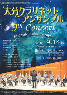 「大分クラリネットアンサンブル9th Concert -Fantastic Clarinet’s Night-」に本学教員が出演します!