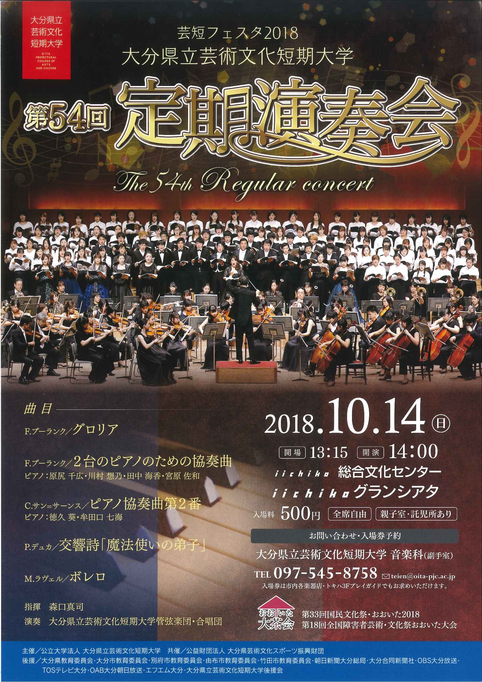 本学音楽科の最大イベント「第54回定期演奏会」を、10月14日(日)iichiko総合文化センター グランシアタにて開催します。このイベントは、芸文短大音楽科・専攻科音楽専攻の全学生と全教員、卒業生らが出演者およびスタッフとして総力を挙げて取り組んでいるものです。