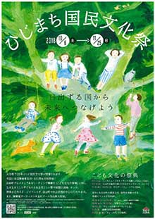 日出町ではメインであるリーディング事業を「こども文化の祭典」と称し、生き生きとした子どもたちを主役とした歌や楽器の演奏、ダンス、神楽などのステージイベントが、日出町中央公民館を中心に行われます。また、障害者アーティストを含むアート作品展も開催。