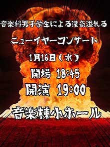 「音楽科男子学生による漢気溢れる ニューイヤーコンサート」を開催します!