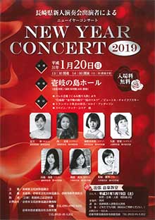2019年1月20日(日)、壱岐の島ホールにて、長崎県新人演奏会出演者による「NEW YEAR CONCERT 2019」を開催します。
