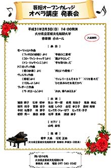 今年度後期に行われた「オペラ講座」の受講者が、練習の成果を披露します。