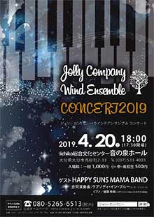 4月20日(土)、iichiko総合文化センター音の泉ホールにて開催される、「Jolly Company Wind Ensemble Concert2019」に本学 非常勤講師の新見 準平が出演します!皆さま、ぜひお越しください!