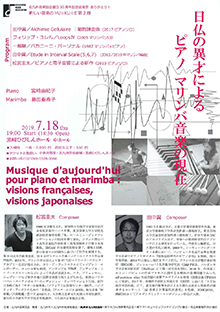 7月18日(木)、黒崎ひびしんホール 中ホールにて、北九州音楽協会創立30周年記念音楽祭を開催します。 第2部の「日仏の異才によるピアノ マリンバ音楽の現在」に本学音楽科講師 松宮圭太が出演します!皆さま、ぜひお越しください!