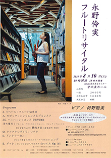 また、18:40よりロビーにて、本学専攻科フルート専攻生によるプレコンサートを開催します!ピアノで本学非常勤講師 河野聡美が出演します!