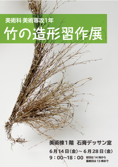 美術棟にて作品展「竹の造形習作展(美術専攻)開催中です