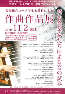 11月2日(土)、本学音楽ホール棟音楽ホールにて、音楽総合コース学生と教員による「作曲作品展」が開催されます。
