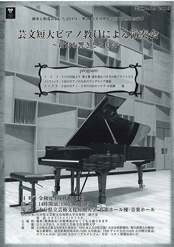 11月30日(土)、本学の新しい音楽ホールと新しいピアノを記念して、本学ピアノコース教員によるピアノソロ、ピアノアンサンブルのコンサートを開催します!